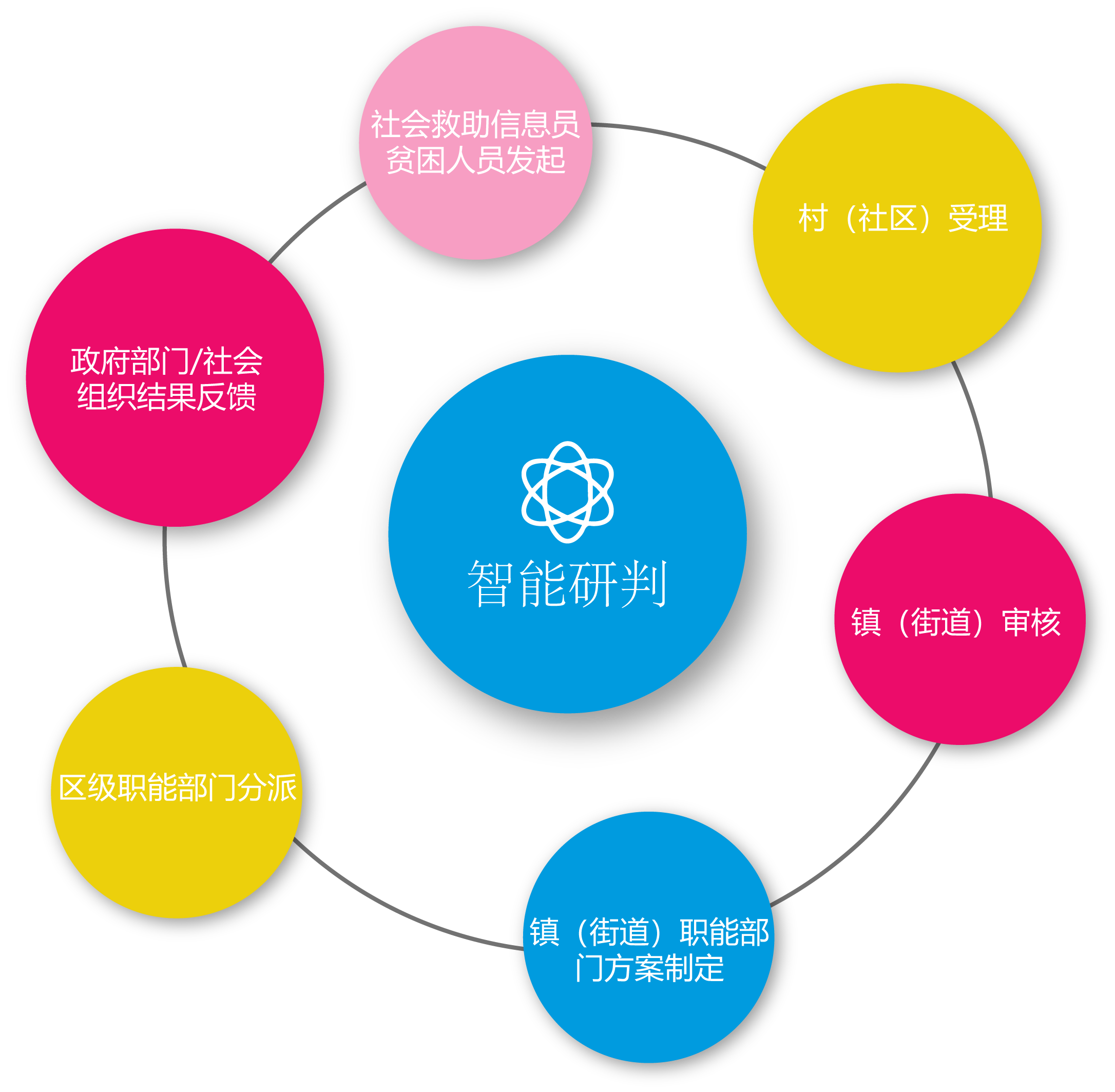 平台包括“一网一端一系统一中心”,为每个困难家庭建档立卡,高位推进救助帮扶与困难识别相衔接,深入分析致贫原因,逐户制定帮扶措施,做到“一户一档一策”,通过政府三级救助(区级、镇街道、村社区)和社会关爱,完善帮扶困难家庭、慈善定向捐助等机制,打造社会帮扶新通道,建立起各级政府、社会力量与困难家庭之间的桥梁,打造精准帮扶工作的“1+1+1”新模式。