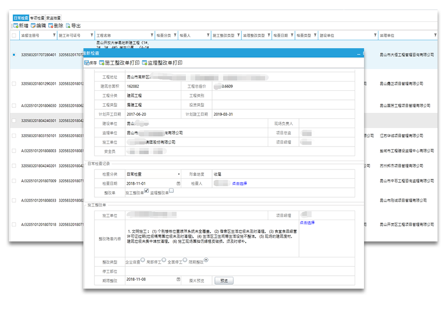 3、本系统集信息采集、储存、查询为一体、解决各级安全生产监督管理部门信息智能化管理;处理安全监督申报、任务分配、资料备案、监理考核、安全隐患管理、危险通报、验收、日常检查、竣工、数据统计等功能。
